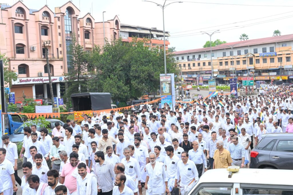 ಮೂಡುಬಿದಿರೆ: ಶ್ರೀ ಕ್ಷೇತ್ರ ಧಮ೯ಸ್ಥಳ ಹಾಗೂ ಡಾ. ಡಿ. ವೀರೇಂದ್ರ ಹೆಗ್ಗಡೆ ಅವರ ಬಗ್ಗೆ ಅಪಪ್ರಚಾರ ಮಾಡುತ್ತಿರುವ ಬಗ್ಗೆ ಖಂಡಿಸಿ ಜೈನ ಧರ್ಮ ಹಿತ ರಕ್ಷಣಾ ಸಮಿತಿಯಿಂದ ಶ್ರಾವಕರ ನಡೆ, ಧರ್ಮ ರಕ್ಷಣೆ ಕಡೆ ಜಾಥಾವು ಮಂಗಳವಾರ ಮೂಡುಬಿದಿರೆಯಲ್ಲಿ ನಡೆಯಿತು.