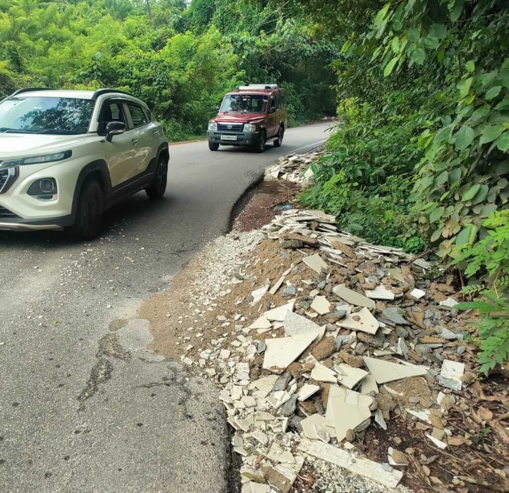 ಮತ್ತೊಂದು ಶುರುವಾಗಿದೆ.ಕಟ್ಟಡ,ಮನೆಗಳಿಗೆ ಬಳಸುವ ಟೈಲ್ಸ್ ಗಳ ಪೀಸ್ ಪೀಸನ್ನು ರಸ್ತೆ ತುಂಬಾ ಬಿರ್ಕುತ್ತಾ ಹೋಗುವುದು. ಇವರಿಗೆ ಗುತ್ತಿಗೆ ಕೊಟ್ಟವರ್ಯಾರೆಂದು ಗೊತ್ತಿಲ್ಲ. ಈ ರೀತಿ ರಸ್ತೆಬದಿ ಟೈಲ್ಸ್ ಪೀಸ್ ಗಳಿರುವುದರಿಂದ ಸಣ್ಣ ವಾಹನಗಳಿಗೆ ಅಪಾಯ.