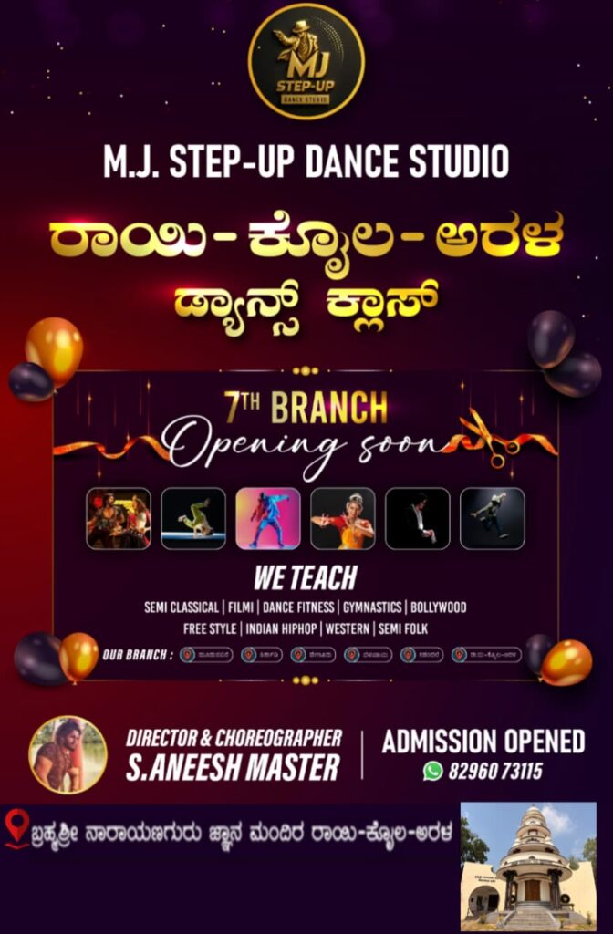 ನೃತ್ಯ ನಿರ್ದೇಶಕ, ಕೊರಿಯೋಗ್ರಾಫರ್ ಎಸ್.ಅನೀಶ್ ಕುಮಾರ್ ಅವರ ಸಾರಥ್ಯದಲ್ಲಿ ಈಗಾಗಲೇ ಮೂಡುಬಿದಿರೆ, ಶಿರ್ತಾಡಿ, ವೇಣೂರು, ಬೆಳುವಾಯಿ, ಕಡಂದಲೆ ಹಾಗೂ ಹೊಸ್ಮಾರಿನಲ್ಲಿ ಡ್ಯಾನ್ಸ್ ಕ್ಲಾಸ್ ಗಳಿದ್ದು ರಾಯಿ,ಕೊಯಿಲ ಹಾಗೂ ಅರಳ ಗ್ರಾಮಗಳನ್ನು ಕೇಂದ್ರವಾಗಿಟ್ಟುಕೊಂಡು ನಾಳೆ ಏಳನೇ ಶಾಖೆ ಪ್ರಾರಂಭಗೊಳ್ಳಲಿದೆ.