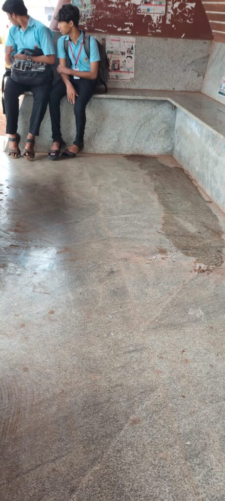 ಅದ್ಯಾರೋ ಕೆಲವು ಕಜವುಗಳು ಇದರೊಳಗೆ ಬಂದು ಒಂದಿಷ್ಟು ರಾಶಿ ಕಜವುಗಳನ್ನು ಹಾಕಿ ಹೋಗಿದ್ದರು.ನೀರಿನ ಬಾಟಲ್, ದುರ್ನಾಥ ಬರುವಂತಹ ವಸ್ತುಗಳನ್ನು ಹಾಕಿರುವುದರಿಂದ ದುರ್ನಾಥದಿಂದ ಪ್ರಯಾಣಿಕರಿಗೆ, ವಿದ್ಯಾರ್ಥಿಗಳಿಗೆ ಇದರೊಳಗೆ ಪೊಗ್ಗಲೂ ಅಸಾಧ್ಯವಾಗಿತ್ತು.