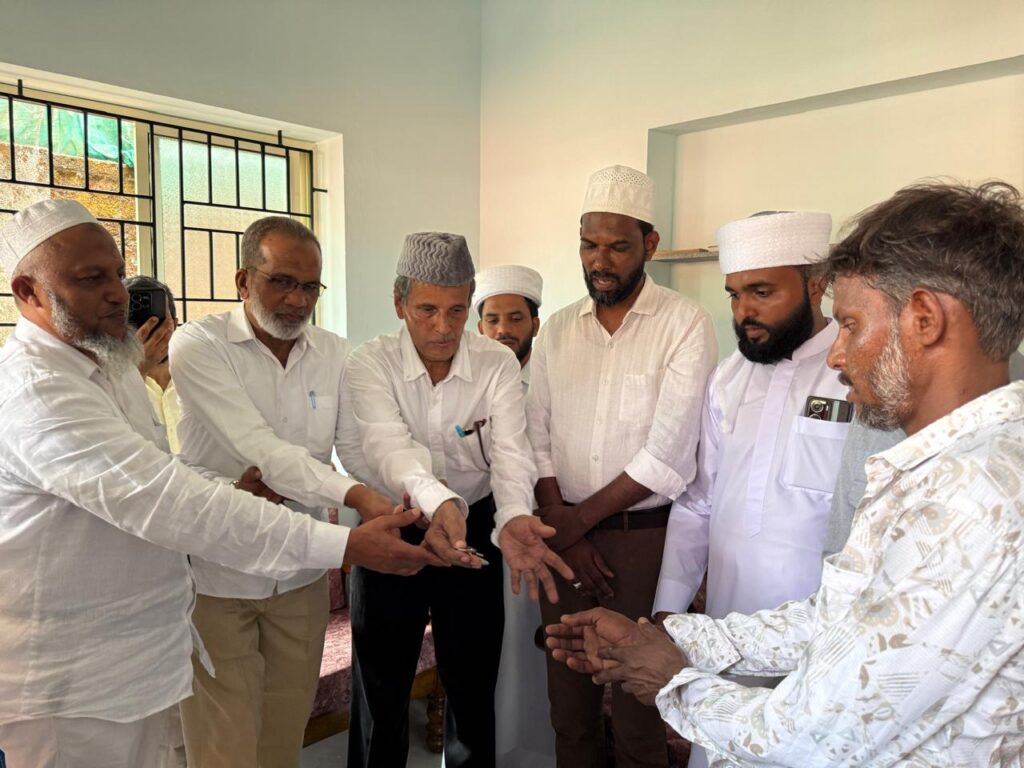 ಮಸೀದಿ ಕಮಿಟಿಯ ಅಧ್ಯಕ್ಷ ಇಸ್ಮಾಯಿಲ್ ಕೆ.ಪೆರಿಂಜೆ ಅವರು ಮನೆಯ ಕೀಯನ್ನು ಮುಸ್ತಫಾ ಅವರಿಗೆ ಹಸ್ತಾಂತರಿಸಿದರು.